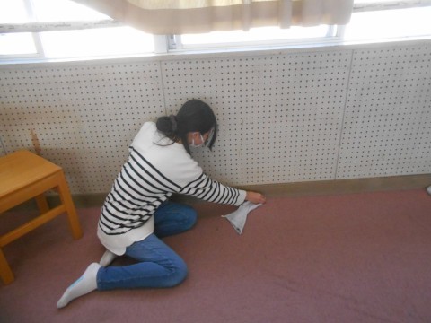 音楽室の掃除もしてくれています。壁の汚れもカーペットの汚れもきれいに,きれいに♪