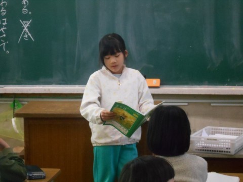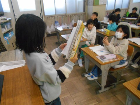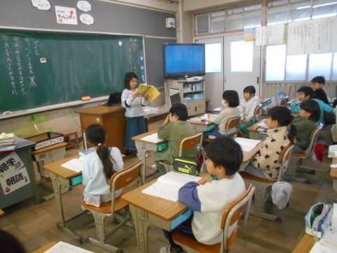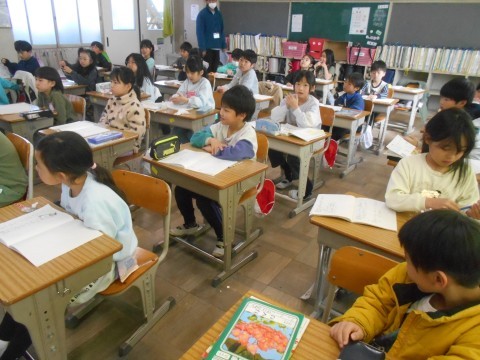 お隣のクラスでは発表会です。自分が2年生で一番頑張ったことを発表していました。