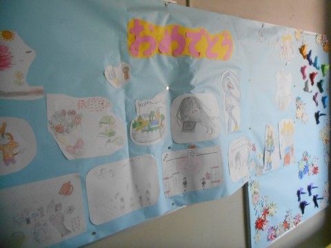 卒業式を間近に控え,各学年より素敵な掲示物が飾られています。