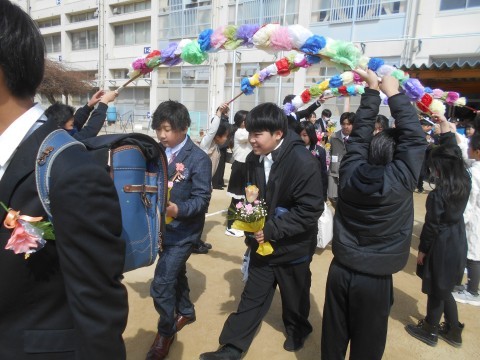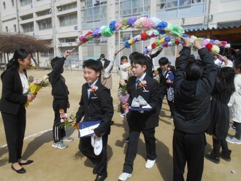 みんなとても晴れやかな顔をしています。 本当に卒業おめでとう! 少し寂しくなりますが,みなさんの素晴らしい旅立ちを心よりお祝いします。中学生になっても,いつまでも元気に過ごしてくださいね♪