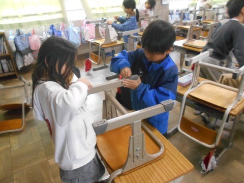 椅子の足の裏をほじほじ…,ほじほじ… 真剣に取り組んでいる姿がステキでした♪