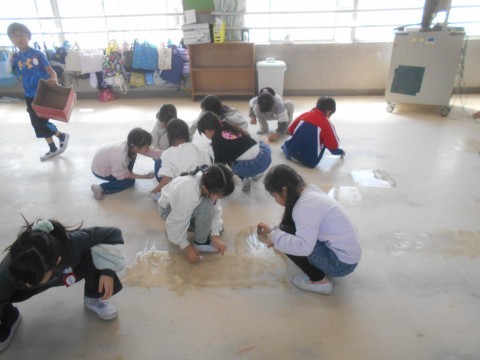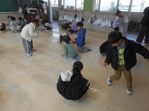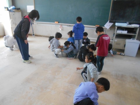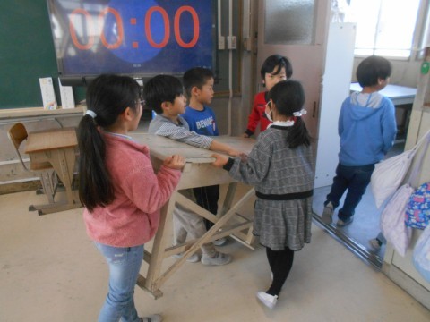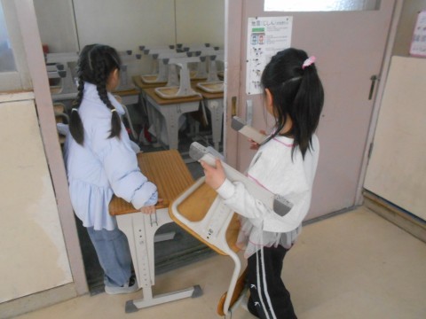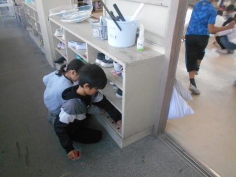 1年生も力を合わせて一生懸命,大掃除しています。