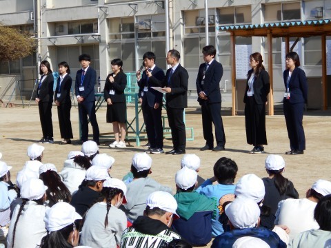 新しく赴任された先生方からの挨拶がありました。その後に校歌斉唱♪