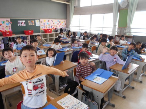 教室に入るたび,元気に挨拶してくれる1年生♪ 学校のルールについて,学んでいます。