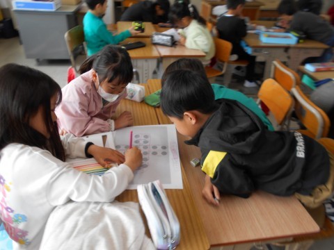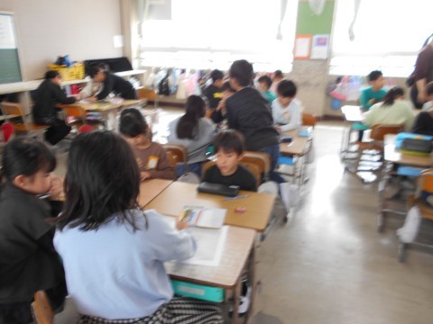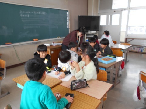 机を合わせ,班の形になり,頭を突き合わせて,一つの課題に取り組む。素敵な姿ですね♪