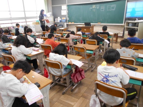 国語の時間。進出漢字のお勉強です。画数が多い漢字が出てきましたね。
