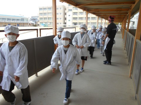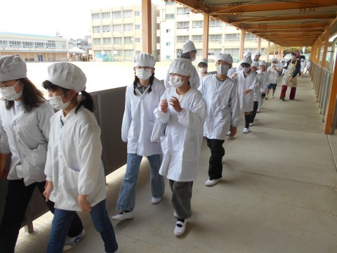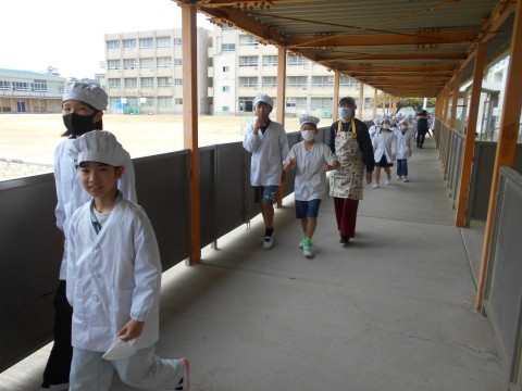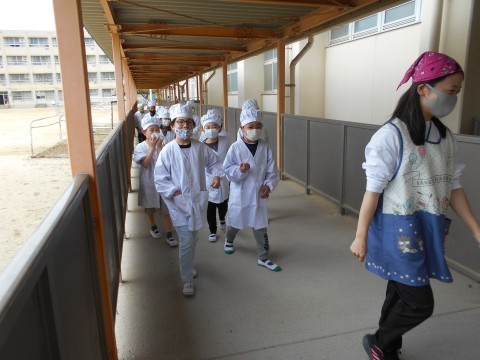 2年生から6年生まで,今日から給食が開始! 続々と配膳室へやってきています。