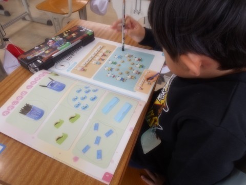算数の授業では,数をみんなでかぞえたり,ブロックを使ってみたりしました。