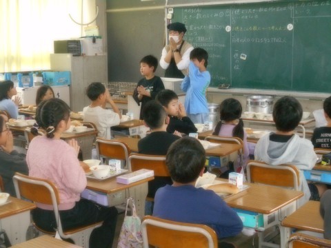 当番さんが「いただきます」の挨拶をして,みんなでおいしくいただきました。
