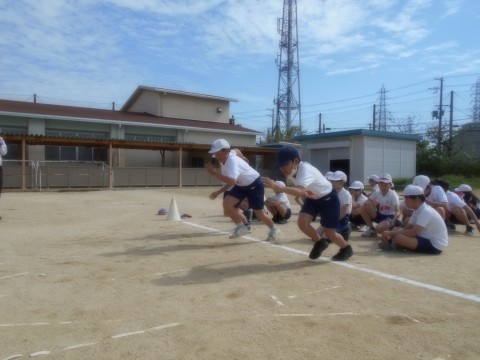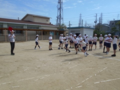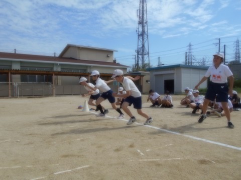 50メートル走のタイムを計りました。初めに,先生がスタートダッシュのコツを教えてくれました。中には,7秒台の記録も・・・!最後まで一生懸命に走り切りました。