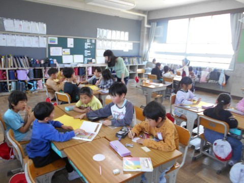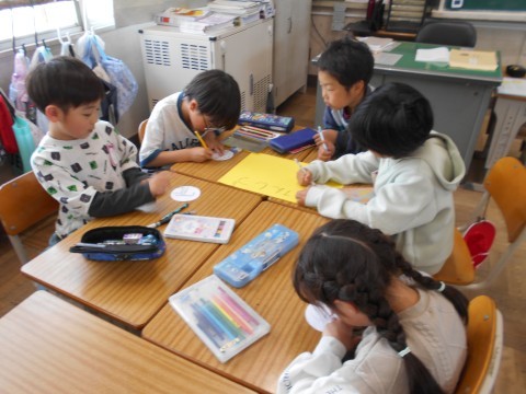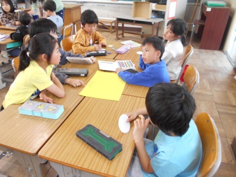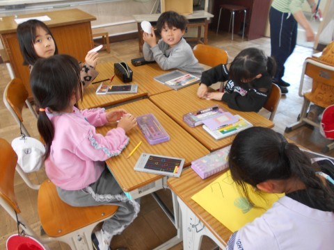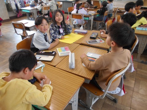 班の形にして,協同作業! こういう時間が仲間づくりにつながりますね♪