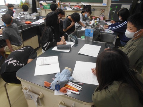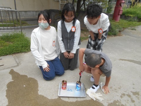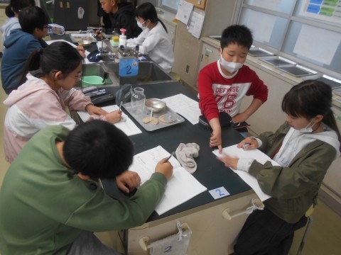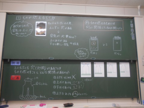 6年生 本日の理科 公開日 2026/04/15 更新日 2026/04/15 6年生 燃え続けるための穴の解決にむけて実験。空気の流れを見ないといけない。空気は透明で見えない……見えるようにするには。線香の煙を使えばいい!煙の動きで空気の動きを確かめました。空気の出入りが必要!新鮮な空気が必要!宇宙で火は燃えないってこと??うちわで火を起こす理由がつながった!!結果から分かったことがまとまりそうですね。 +3