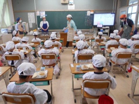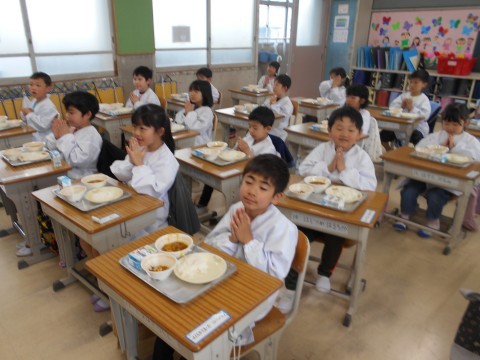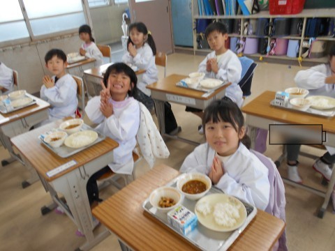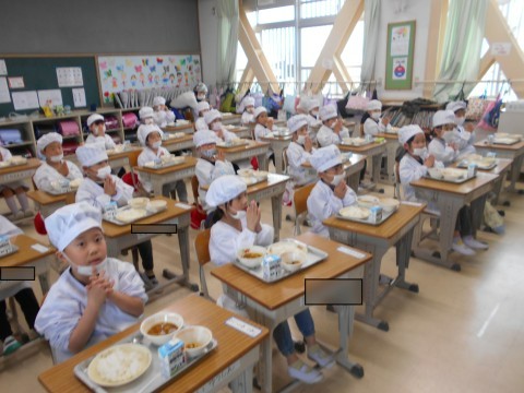 配膳,完了! 先生のお話を聴いて,それでは…「手を合わせて」「合わせました!」「いただきます☆彡」