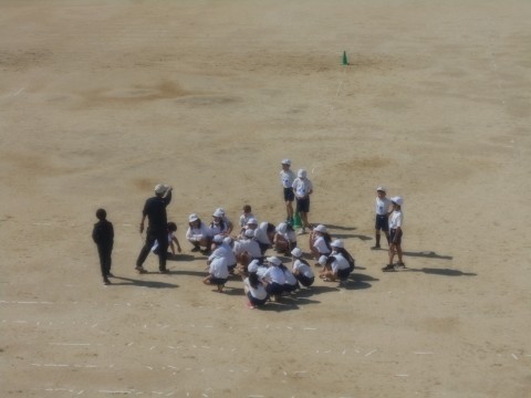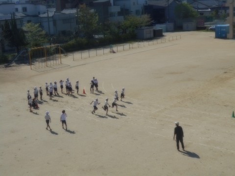 50メートル走のタイムを計るために,ダッシュの練習をしています。少しずつ暑くなってきたので,水分補給も忘れずしましょう!