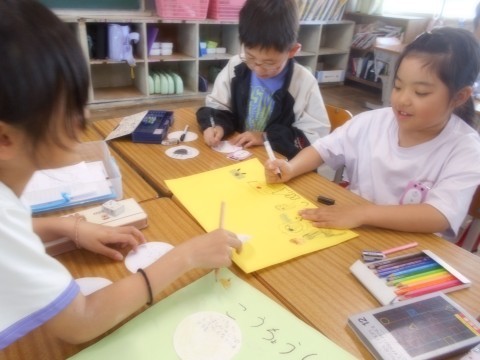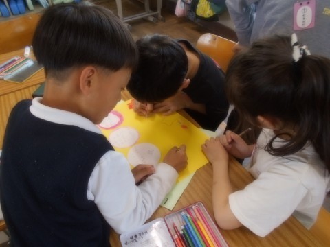 イラストを書いたり,どんなことをするのかを書いたり,みんなで協力して作成しています。