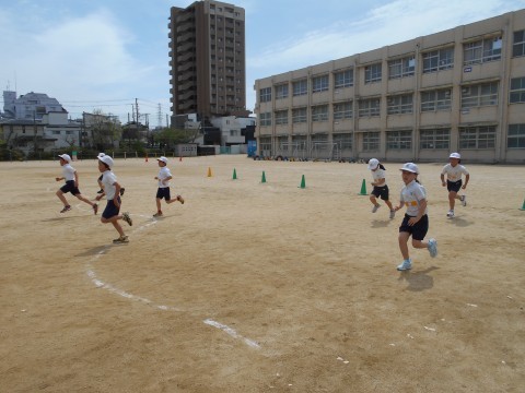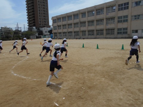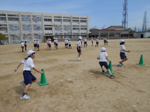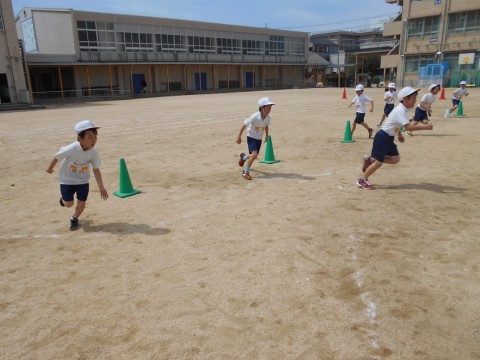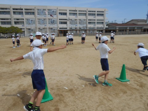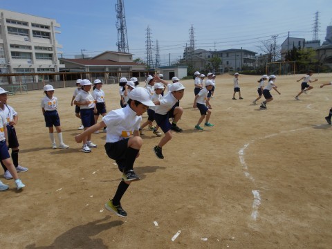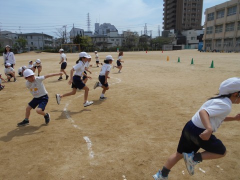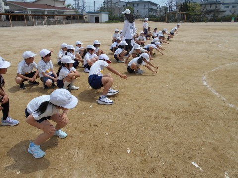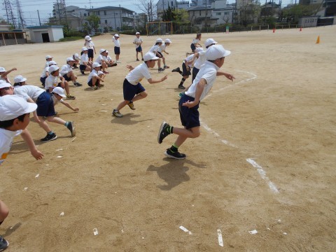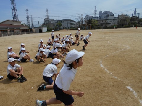 腿を上げたり,横走りをしたり,座ってからダッシュしたりと,ウォーミングアップしていました。