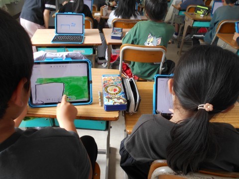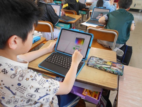 パソコンのお絵かき機能を使っています。楽しそう♪