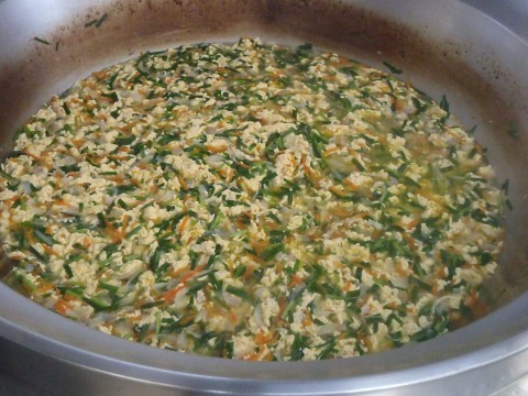 今日は,ごはんの上に小おかずのチャーハンの具を混ぜて食べる献立でした。