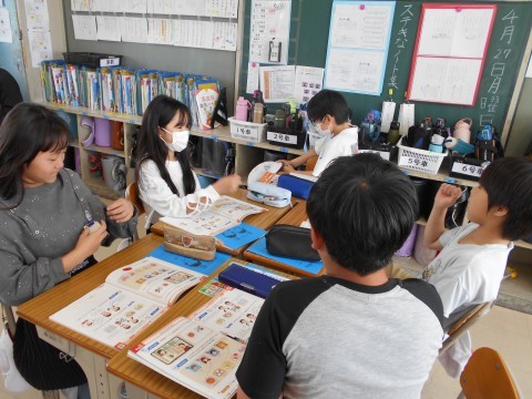 5年生授業の様子 その2 公開日 2026/04/27 更新日 2026/04/27 5年生 班になって,ダイストーク。さいころの出た目で,尋ねる好きなもののカテゴリーが決まります。盛り上がっていました♪ +3
