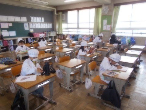 給食当番を待っている間、静かに過ごしている様子がありました。すばらしいです!