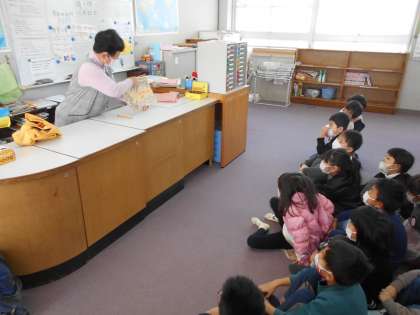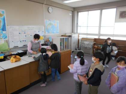 本の返却と読み聞かせの様子です。