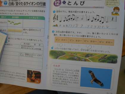 「とんび」を聴いてワークをしていました。