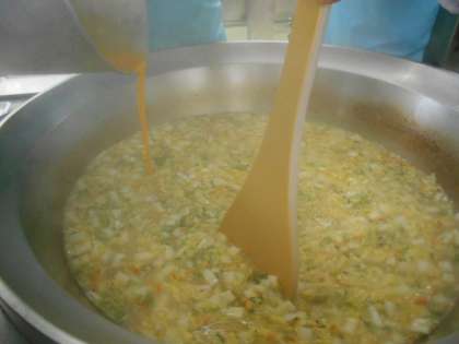 堺市産の小松菜を仕上げに入れると彩りがよくなりました。