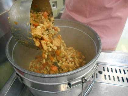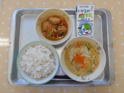 献立は「ご飯,牛乳,トック,大豆と厚揚げのピリ辛炒め」でした。