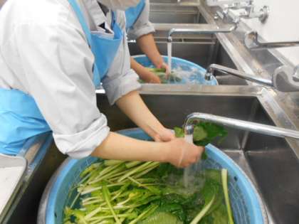 給食では,昆布と削り節でとった出汁でうま味のある若竹汁をつくりました。