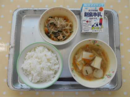 献立は「ご飯,牛乳,ワンタン,春雨の炒め煮」でした。