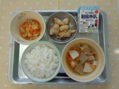 献立は「ご飯,牛乳,冬瓜汁,和風チキン,キャベツの煮浸し」でした。
