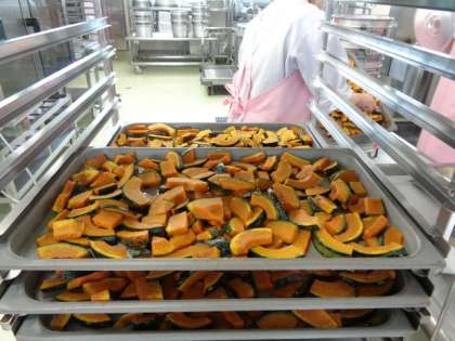 ベイクドパンプキンは,北海道のくりかぼちゃをオーブンで焼いてつくりました。