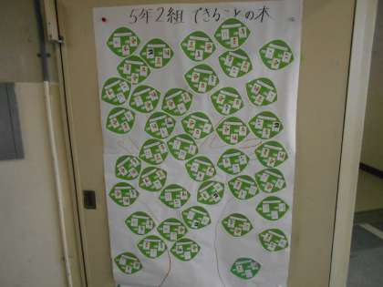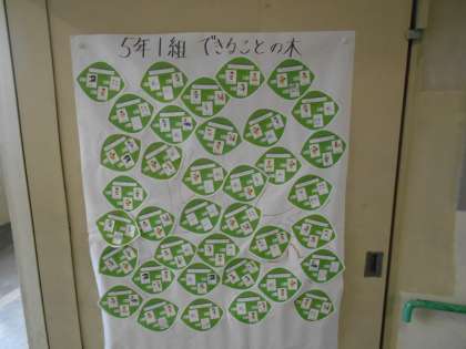 5年生ができることを英語で書かれてカードが掲示してありました。