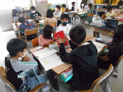 1組・・・国語 役割を決めて話し合いをしました。