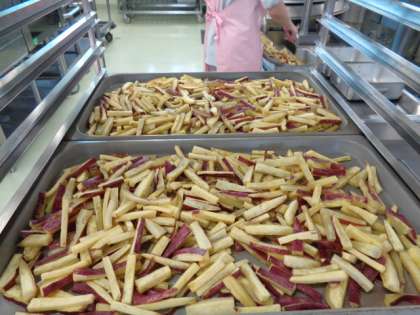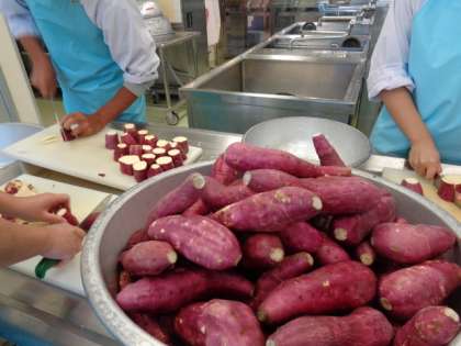今日は,鳴門金時「里むすめ」をつかって,「さつまスティック」をつくりました。