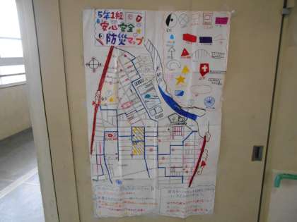 5年生が作成した防災マップが掲示してありました。