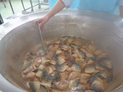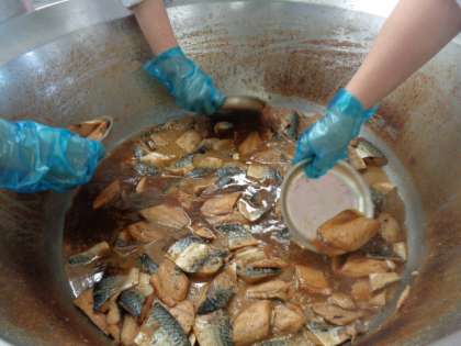 煮崩れしないように,皿にのせて数えながら配缶しました。