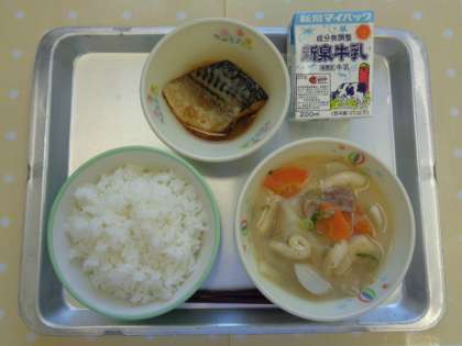 献立は「ご飯,牛乳,豆乳入りかす汁,鯖のしょうが煮」でした。