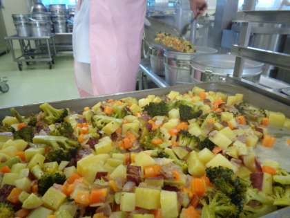 今日は堺市産のブロッコリーをつかって,コロコロサラダをつくりました。