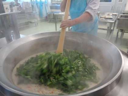 「小松菜のクリーム煮」には,白菜や小松菜などの野菜がたっぷり入っています。