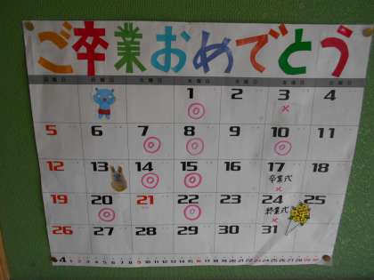 3月の開館日が掲示してありました。