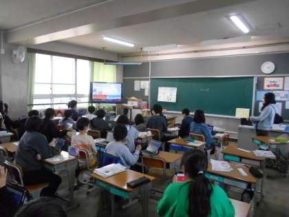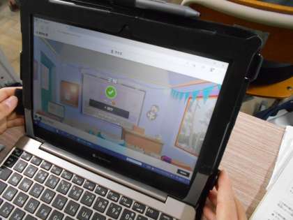 タブレットを使って学習の振り返りをしていました。