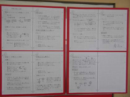 単元のまとめと上手にまとめられらノートが掲示されていました。