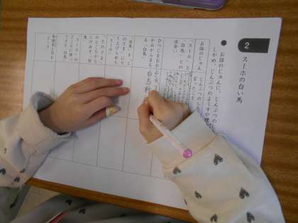 お話の順番に登場人物の行動や心情を表にまとめていました。
