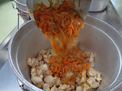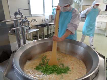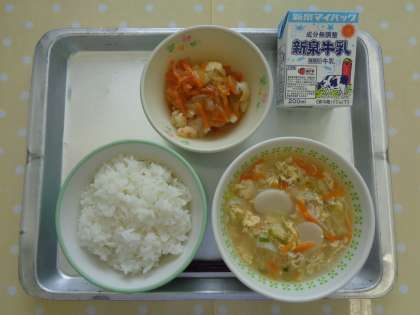 給食のにんじんやピーマン・青ねぎの色が料理の味を引き立てました。