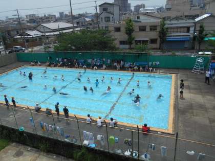 安全を確保するための泳ぎ方や浮き方を学習していました。