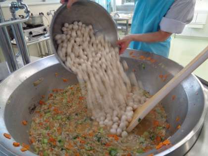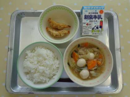 献立は「ご飯、牛乳、八宝菜、揚げ餃子」でした。