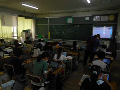 洪水についてタブレットを使って調べていました。