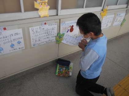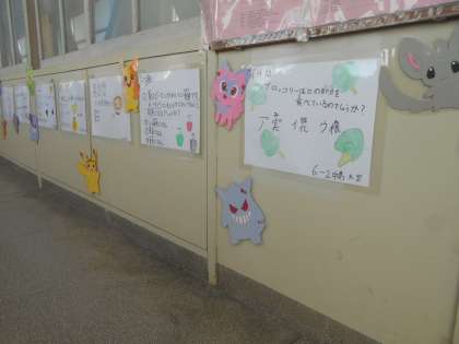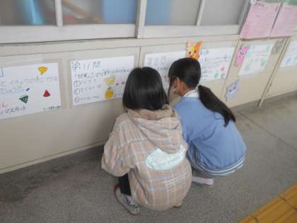 11月中、食に関するクイズのスタンプラリーを開催しています。廊下に問題が貼られています。全問正解することができるかな。先生も保護者ももちろん参加オッケーです。