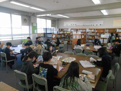 学校図書館で静かに本を読んでいました。